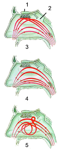 Hər nəfəs aldığımızda, "hava" olaraq adlandırdığımız qaz qarışığı, burun dəliklərindən içəri girər. Tək bir nəfəslik hava, milyard dəfə trilyon sayda molekuldan meydana gəlir. 6 Açıq gözlə görə bilməyəcəyimiz qədər kiçik olan qoxu dənəcikləri də böyük miqdardakı molekuldan ibarət bu qrupun içində olarlar. Nəfəs almamızın ardından, burunun içindəki xüsusi sümüklər (turbin sümüklər) havanın bir qismini qoxu alıcı bölgəyə istiqamətləndirər. Beləcə, qoxu molekulları, burun boşluğunun üst hissəsində olan iybilmə bölgəsinə çatarlar. Bura, burun dəliklərindən təxminən 7 santimetr içəridə və yuxarıdadır. İyləmək istədiyimiz bir çiçəyi burnumuza yaxınlaşdırıb dərin bir nəfəs aldığımızda isə, daha çox qoxu molekulu qoxu bölgəsinə çatır.